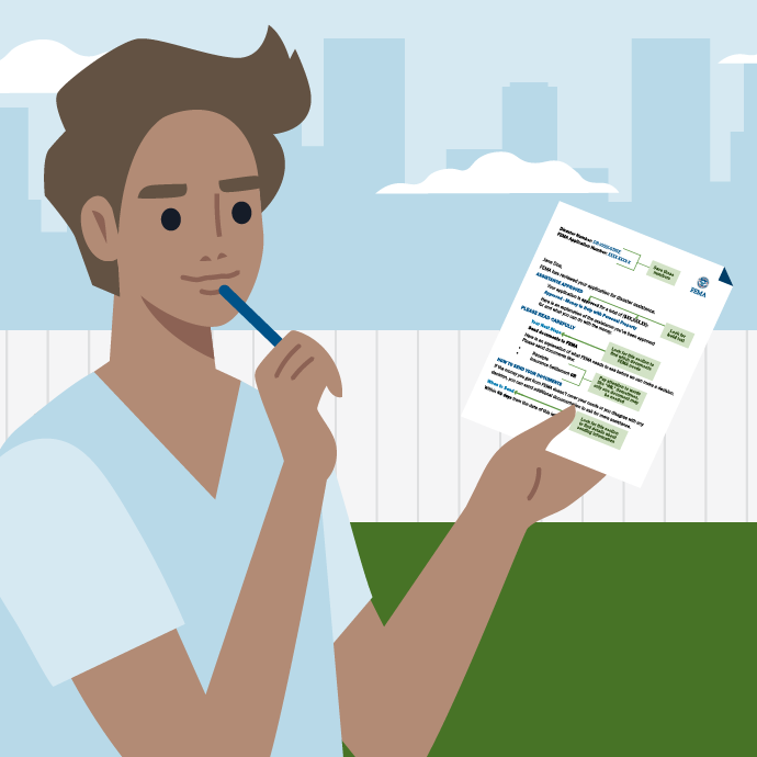 FEMA will send you a letter after you apply for assistance that explains your next steps.